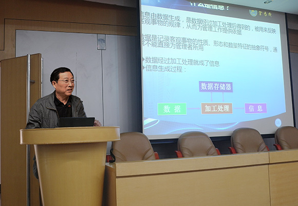 儀式結束后,公司董事長周和生為學校相關部門工作人員及管理學院研究生作了題為“建設項目全過程投資管理及審計系統介紹”的學術報告。