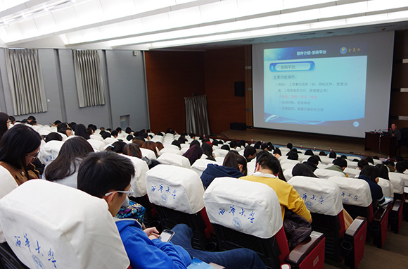 儀式結(jié)束后,周和生董事長為建筑與土木工程學(xué)院學(xué)生及相關(guān)部門工作人員作了題為“建設(shè)項目全過程投資管理及審計系統(tǒng)介紹”的學(xué)術(shù)報告。